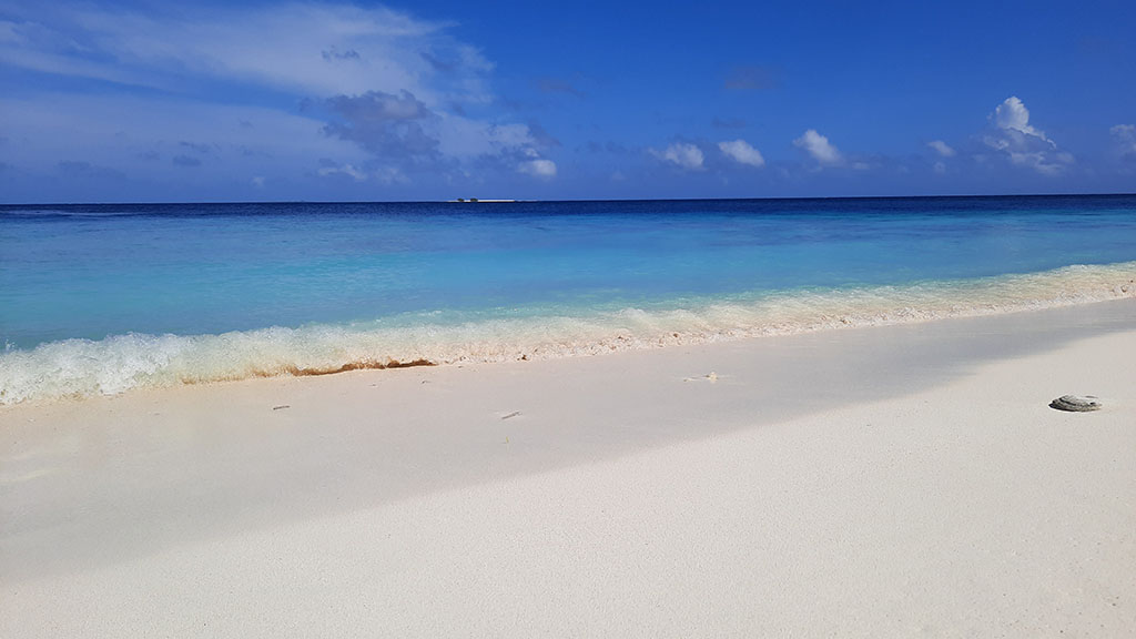 Koralni greben sa obe strane kao i laguna su dom savršenom svetu različitih korala, riba i ribica. Predivno mesto za provesti nekoliko sati. Ti naši sati su započeli na suncu, ali su se brzo pretvorili u kišu i pravu morsku oluju. I to na ostrvcetu od 20 metara. Na ostrvo Rasdhoo nije bilo moguće otići jer je zbog zabeleženog pozitivnog slučaja kovida bilo zatvoreno. Tako su nam bar rekli menadzer i njegov ortak, vlasnik motornog čamca. Preostalo je jedino da po tom nevremenu snorklingujemo i čekamo prolazak oluje. I osećaj je zaista divan, plivati u toploj laguni dok vam po ledjima pljušti, takodje, topla kiša. Te tropske kiše i oluje su česte i brzoprolazeće, a u medjuvremenu smo imali i piknik koji je sastavni deo aranžmana i to je trebalo izvesti na tom vetru i pljusku. Bilo je zabavno.