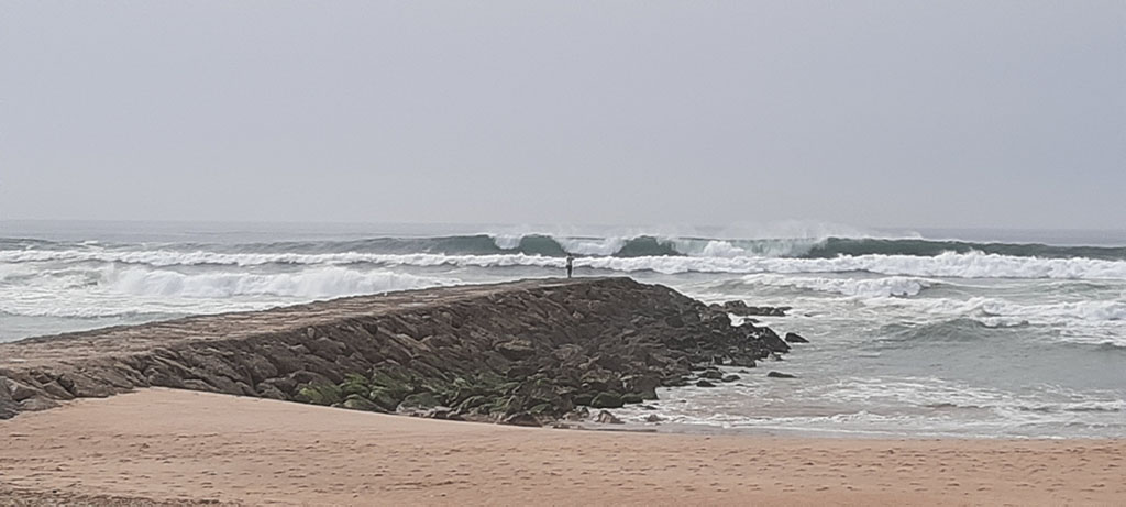 Zapadna strana Lisabona leži na delu obale Atlantika. Najveća gradska plaža od oko 20 kilometara dužine je pravi raj za sufere i vrlo poznata među svetskim ljubiteljima ovog sporta koji je posećuju. Višemetarski talasi i buka, nastala usled udara hiljada kubnih metara vode o obalu, su me podsetili koliko sam sićušan na ovom svetu, sa kojim smo u tom trenutku bili konektovani dok smo šetali izuzetno širokom plažom, po sitnom pesku, a ledena voda nas je na momente zapljuskivala nakon naleta talasa. Deo obale iza plaže je popunjen stambenom novogradnjom, deo mestimično načičkan šarenim obalskim vikendicama, a deo potpuno prazan i najlepši.