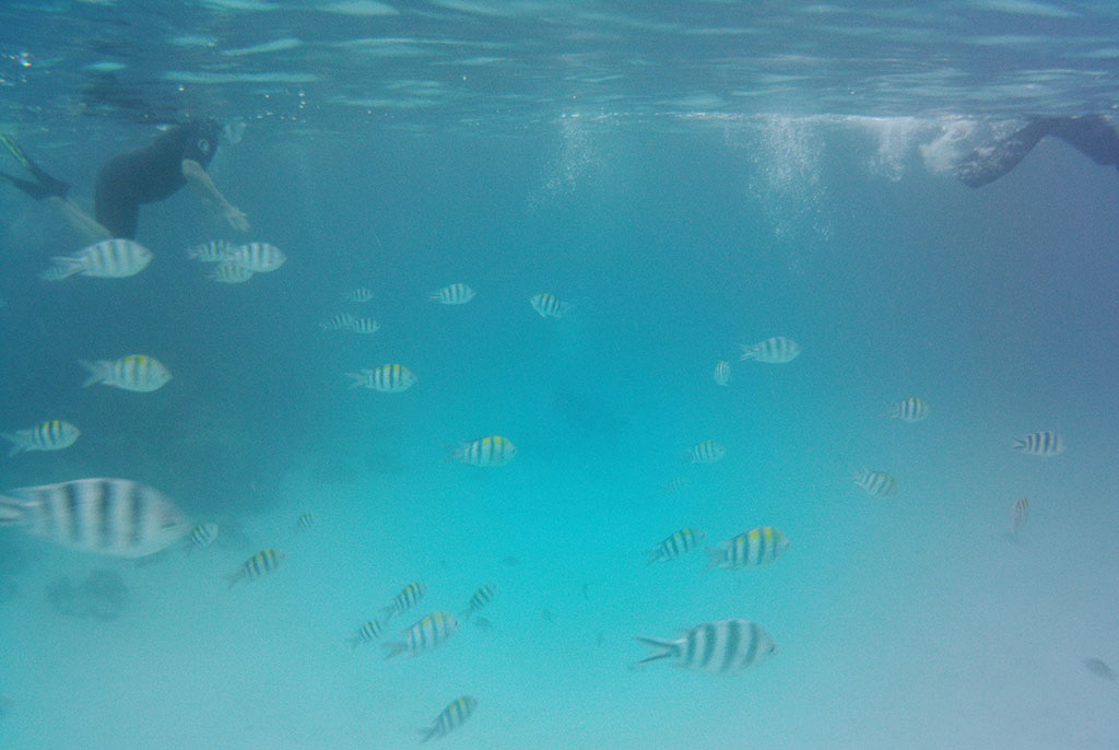 Nakon delfina, naredna dva sata smo proveli u laguni iza onog malenog ostrvceta Mnemba u blizini, na kojem nije dozvoljeno pristajanje, nikome osim gostima lokalnog i preskupog rizorta. Mali peščani sprud (sandbank) je jedna od prirodnih znamenitosti Unguje i nalazi se usred ogromne lagune prebogate koralima i tropskim ribicama. E to je već priča u čijim sam dešavanjima sučesnik. Savršeno mesto za sve ljubitelje snorklinga. Ovakva iskustva su nam poznata, znamo šta da očekujemo i šta poneti sa sobom. Nazuvice za snorkling su imperativ ako želite da se vratite čitavih tabana, maske za snorkling, naravno i odeća sa efektom UV zaštite. Svakako je bolja zaštita od krema, a u isto vreme ne ugrožavate živote korala osetljivih na hemikalije koje turisti donose sa sobom na koži. Neka ovo bude i apel, sačuvajmo prirodu za buduće generacije! Nepisano je pravilo da ne dodirujete ništa pod vodom i da se naoružate dobrom voljom. U tom slučaju takav dan ćete pamtiti doveka!
