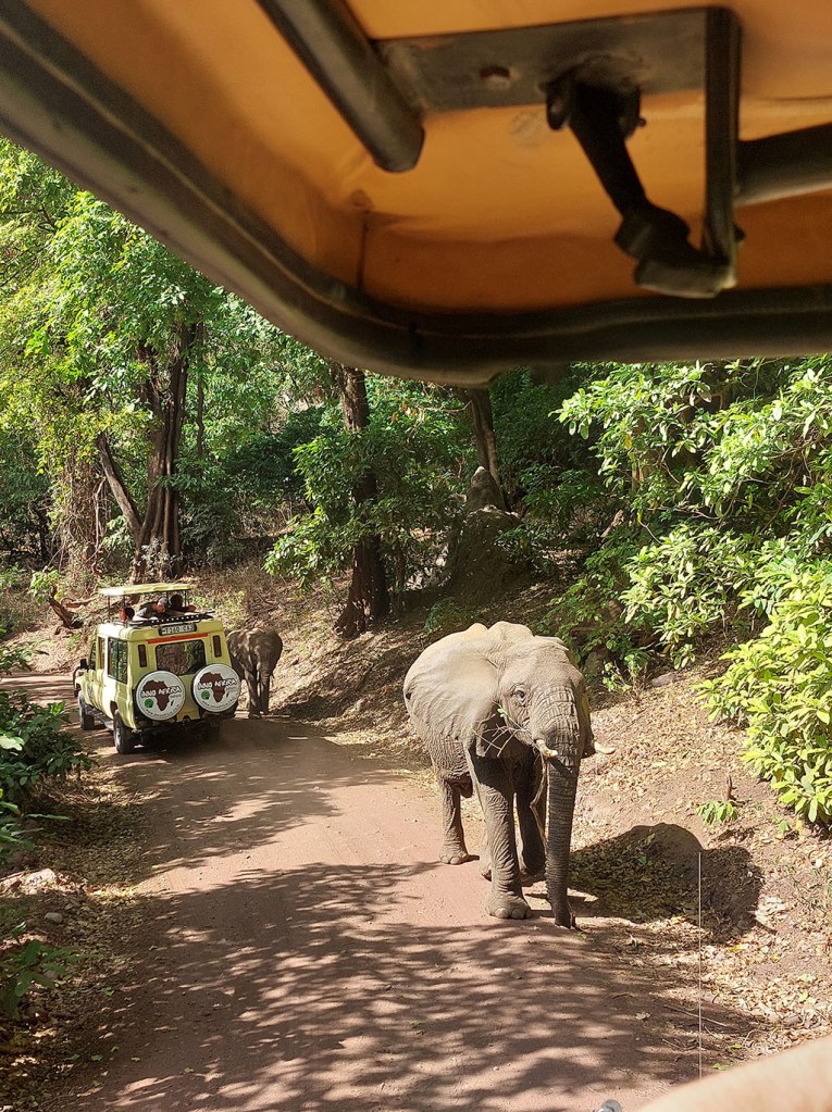Put kojim smo se kretali povezuje selo Mto Wa Mbu sa nekim drugim selima okoline i na njemu smo sretali školske autobuse bez prozora, dupke pune decom. Kada živite u prirodi deo ste nje. Naše safarisanje nismo zavržili u nekom od njih, ali se nismo ni vraćali u selo koje je bilo naš domaćin. Negde na polovini jezera napravili smo pauzu na mestu adaptiranom za ručak. Poslednji obrok iz pokretnog frižidera koji smo nosili sa sobom. Klupe i stolovi pod pokrovom, a tu je i toalet. Radnik koji je brinuo o urednosti prostora nam je ispričao kako je koji dan pre video zelenu mambu u visećem položaju sa grane, tu na ulazu u toalet. A pokazao nam je i mesto ispod kamena koje je dom kobri, takođe, ispred ulaza u toalet. Tanzanija je dom mnogim stvorenjim sa kojima ne želite da imate posla, poput crnih mambi i raznih otrovnih paukova.