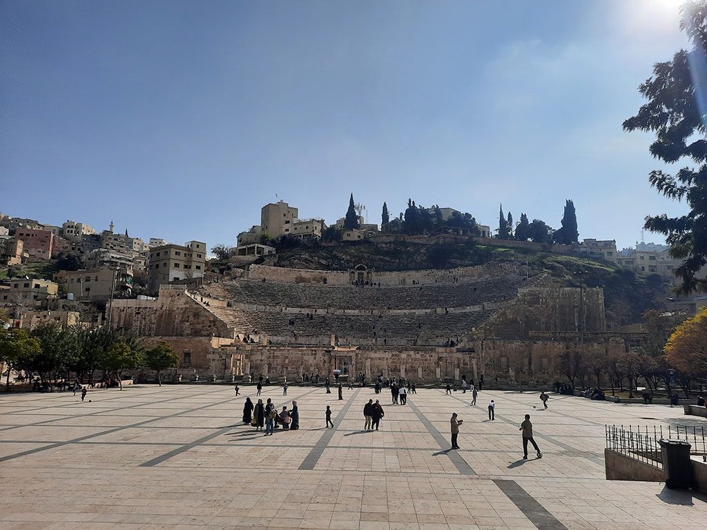 Kada smo se te večeri ušunjali u grad, Sunce je već skliznulo sa Zemljine kupole. U nadi da ćemo se pre spavanja ipak kotrljati preko udobnih mehurića, pružili smo priliku hotelskom osoblju dok smo šmekali okolinu, orijentisali se u prostoru i planirali sutrašnji dan. Znali smo unapred da ćemo posetiti „Rimski teatar“ preko puta hotela i „Staru citadelu“ na brdu iznad, ali to nije jedino što ovaj grad nudi. Trotoari su mahom oslobođeni šarenih tezgi nakon sumraka, ali nanizanih duž kolovoza već posle svitanja. Iza leđa prodavaca u beskrajnim redovima šibaju automobili, dok tezgaroši preko svoje robe dozivaju potencijalne kupce u masi. Kroz uzane prolaze između montažnih postolja i fasada malih radnji teku reke ljudi, a trgovci bi deo svojih proizvoda okačili ili poređali ispred i oko ulaza. Neki od njih, kao i marketi i restorani, rade do kasno u noć, a grad blješti u sebi sopstvenom šarenilu. Aman od 4 miliona stanovnika smo doživeli kao bezbedno mesto za turiste. Lokalci nisu navalentni, za razliku od onih u Vadi Musi i Petri, naprotiv, vrlo su ljubazni, uslužni i srčani.