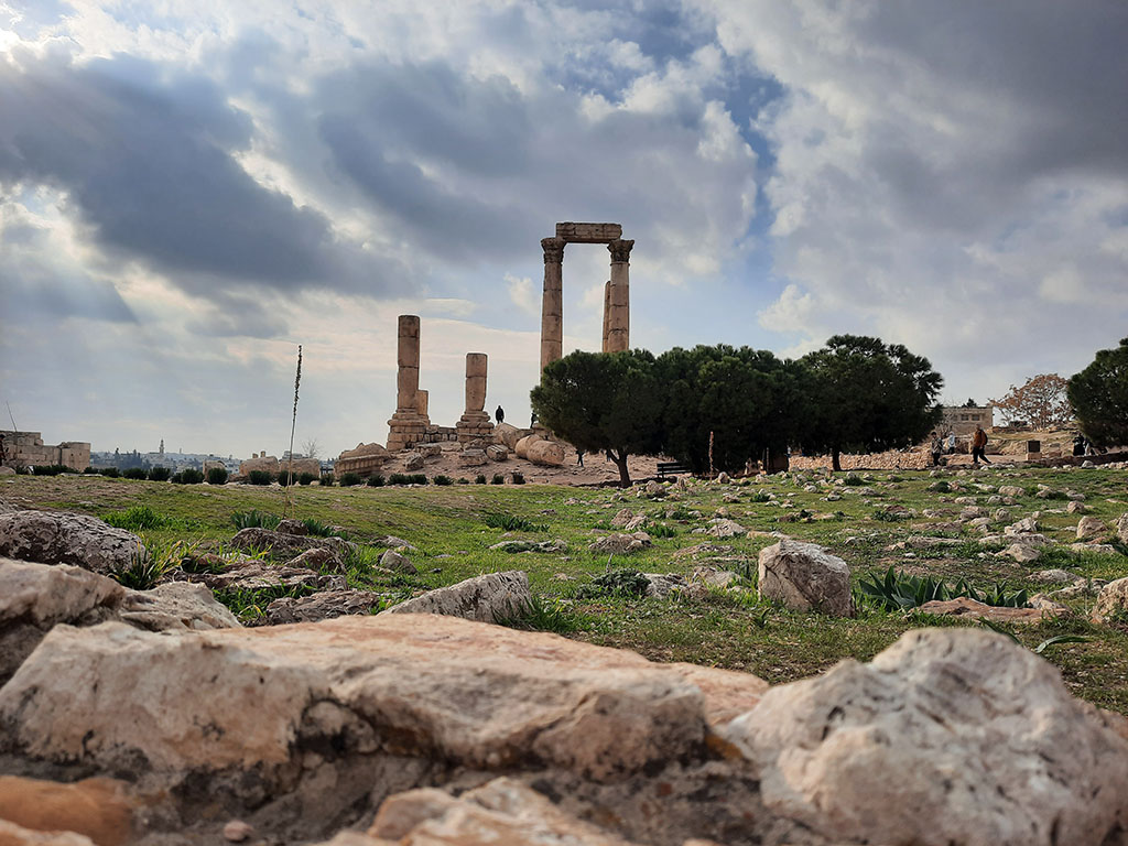 Jezdili smo krcatim ulicama posle doručka, razgledajući stare kuće kako izviru jedna iz druge u neprekidnoj fazi dogradnje, isturenih drvenih terasa ili uličnih fasada oblepljenih pločicama. Prošetali smo ulicom „Rainbow Str.“ šareniju od ostalih, načičkanu lepim restoranima i radnjama. U drugom delu dana skoknuli smo do teatra sagrađenog u vreme kada su gospodari čizme postavili svoju upravu u ovom delu sveta. Zdanje je vidljivo sa popločanog platoa ispred, popunjenog porodicama dok uživaju u lepom danu. Ulaz u prostor gledališta naplaćuju 2JOD po osobi, što prema našem mišljenju nije neophodno, osim ako baš nikada pre niste ušli u neki od mnogih rimskih pozorišta. Stara citadela stražari sa uzvišenja čija senka guta užurbane ulice Amana i teatar. Do tvrđave krivudaju redovi stepenica sa svih strana, migoljeći se između trošnih kuća sve do visokih kamenih zidova. Prvi među njima isklesani su i postavljeni davnih 1.700-tih godina pre nove ere. Rimljani su došli u drugom veku nove ere, zatim Vizantijci i na kraju Arapi. Usled nepostojanja signalizacije na brdu, kružili smo oko zidina ne znajući gde se tačno nalazi ulaz. Kada smo konačno došli, dveri prvog grada na ovoj lokaciji su bile zakatančene. Muškarac srednjih godina nam je, odozgo sa ivice zida, pokazao gde možemo da se uspentramo. Sa kamena na kamen, a nakon pet minuta truda eto nas u utvrdi punoj sveta. Svi ti ljudi su ušli poput nas? Ta pomisao je sama po sebi bila potpuno neverovatna. Veći deo prostora je posut ostacima zidova i stubova zgrada koje nisu preživele vekove. Vlasnik centralne uloge u društvu bio je hram Herkulesa, ispred kojeg je stajala statua impozantne visine njemu u slavu. Nije vam potrebno više od sat vremena da obiđete i najsakrivenije kutke citadele. Odozgo, u svim pravcima pogled se rasipa na grad boje peska i pustinje, sve do ivice horizonta. Ispostavilo se da kapija ipak postoji, na drugom kraju u odnosu na onu zatvorenu, a tu se nalazi i mali restoran, market i toalet. Naravno, i ovde naplaćuju ulaz, po osobi neverovatnih 3JOD. Neplanirano i nenadano uštedeli smo 6JOD.