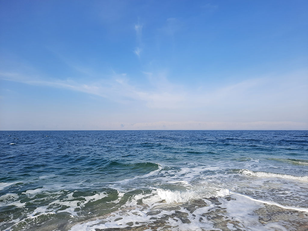Drugo jutro trećeg dana. I nakon reprize noći u hotelu, napustili smo Aman. Naredna destinacija za istražiti je Jerusalim (Jerusalem). Preko hotela smo organizovali taksi, veče pre, do obale reke Jordan. Odmorili smo svoje đonove zamenivši ih autogumama na asfaltu ka zapadu, a tamo meandrira državna granica između Jordana i Izraela. Odnosi dve države nisu baš blistavi, što se reflektuje na granične prelaze i međunacionalni saobraćaj. Kako smo čuli od zaposlenih u našem hotelu, sedmično postoji samo jedan autobus za hodočasnike od Amana do Vitlejema (Bethlehem) i nazad. Taksi ostaje jedina opcija, osim ako već nemate kakav prevoz organizovan unapred. Vožnja od starog dela grada i našeg hotela do granice ne zahteva više od jednog sata, uzevši u obzir distancu koja broji ukupno 55 kilometara. Mi smo malo zabiberili ovu priču, naravno, pa smo za 55JOD, koliko smo vozaču platili njegovo vreme, sišli do obale Mrtvog mora. More, koje je zapravo jezero, graniči dve kulturološki separatisane države zajedno sa ulivajućim Jordanom iz pravca severa. Treće je jezero na svetu po salinitetu. 34,2% soli čine ga 9,5 puta slanijim od proseka svetskog i deset puta više od Sredozemnog mora. Jezero je depresija što znači da se nalazi ispod nivoa svetskog mora, sa površinom vode na čak 430 metara ispod okeana, a to ove obale čini najnižom kopnenom tačkom na planeti. Mnoge plaže su privatizovane i na njima su rizorti nasledili kamen i stenu. Postoje dve opcije kako bi ste došli do vode: prva je da platite 30JOD za dve osobe i provedete sat vremena na posedu nekog rizorta i pripadajućoj plaži, a druga je da pronađete parče divlje slobode. Mi smo odabrali onu prvu. Na mestima slobodnog pristupa nećete imati gde da se istuširate ili umijete posle ulaska u jezero, ali će se svakako pojaviti neki lokalac donoseći vam vodu i za to tražiti 2JOD. Na nekim od njih su sklepali improvizovane tuševe, a oni su zaista neophodni jer vam koža ostaje kristalizovana nakon kontakta sa Mrtvim morem. Vreme nije bilo baš za brčkanje ali smo osetili moć kristala usađenih u H2O. Kamenje na plaži je okovano solju poput ledom zarobljenih obala Baltičkog mora u danima zime. Voda ima neke korisne minerale ali ne izglade baš lepo, više kao neko mutno jezero.