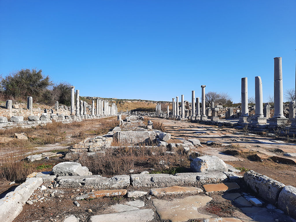 Grandiozna lepota i spektakularna monumentalnost sada su ruševine. Tako danas izgleda antički grad Perge. Gelerima vekova pokidani bedemi, destrukcijom zemljotresa urušene kule i vremenom zagrižene kolonade stubova od mermera i krečnjaka oslikavaju sada samo obrise nekadašnjeg progresa i moći. Ulicama bi tekle reke ponosnih građana i njihovih gostiju. A sa njima i skupocena svila, što su je donosili trgovci sa dalekog i misterioznog istoka. Amfore pune vina vukli su volovi u kolima jer nisu to bile tamo neke prašnjave bogaze kojima bi se provlačili dokoni zemljoradnici u prljavim odurnim tunikama. Ne ne! Široke su to aleje, celom svojom dužinom oivičene pilonima u svim, graditeljima poznatim, stilovima. Besmrtni blokovi od kamena odbljeskuju i dan danas, uglačani sandalama zadovoljnih stanovnika i kopitama pastuva legionara centurija što bi defilovali od kapije one zapadne ili pak do one južne gde još uvek leži stadion. Košare pune hrane, keramika od terakote, od pokućstva svega što je svaka domaćica mogla da poželi. Sve su to vukle mazge i mule, ali i konji onih imućnijih. A šta se sve nije moglo naći od tapiserija, manjih i većih kipova bogova sa potpisima umetnika, statue imperatora ukrašene onim finim kamenjem u svakojakim bojama. I svi se oni i sve se to slivaše u centar grada gde se nekada sunčala agora Perge.